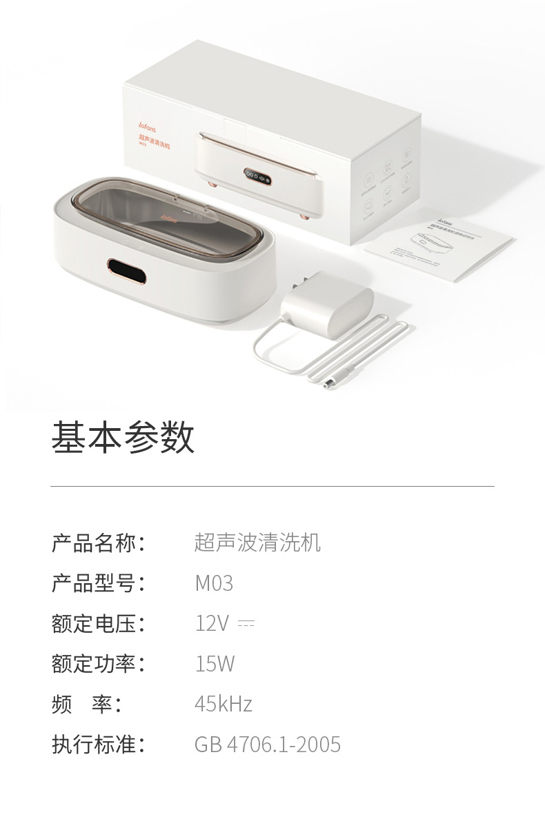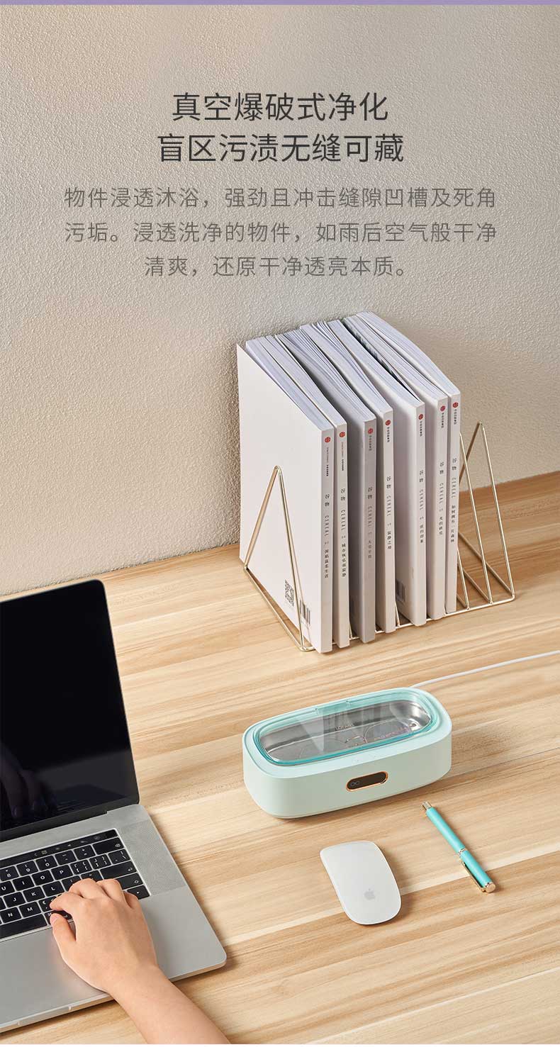 小米生态链 朗菲超声波清洗机,可视化开盖设计,350ml容量,45000Hz的震动频率,使液体中的空气和水分离,形成微气泡,在声压作用下膨胀破裂,瞬间的冲击力不断冲刷物体,多维度深入缝隙、凹槽、及死角,使物体上的油脂、灰尘、细菌等剥离,不损伤物件同时达到清洁效果,令物体表面光泽如新。
