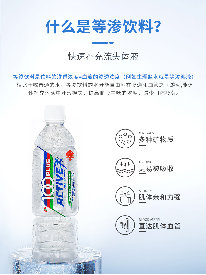 这款100 Plus 等渗功能饮料,马来西亚原装进口,独特的配方结合水分、碳水化合物以及电解质,帮助身体更快速有效地吸收水分,碳水化合物以及电解质,还特别添加了维生素群,为肌体提供消耗的能量,0脂、低糖、低卡、口感上有点像苏打水,清爽原味,无论是运动后喝或者当做休闲饮料都没问题。