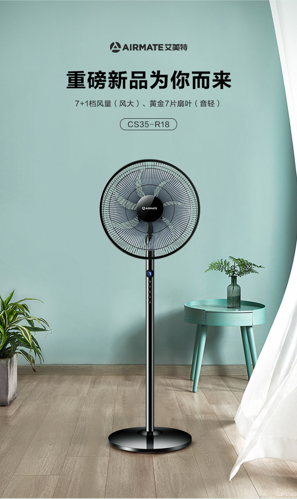 采用的是艾美特创新7片弦月扇叶,相对于常见的羽翼扇叶,扇叶更宽,切风更加细腻,风力更大更柔和,送风可达10米。升级7+1(静音)种风档,满足大部分人的需要;9小时定时+24小时自动关机,个性化按键+遥控控制,操作简单方便。