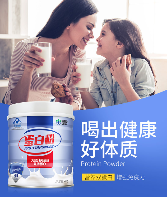 这款康恩贝 乳清蛋白质粉,国家食品药品监督管理局蓝帽认证,采用新西兰进口乳清蛋白+非转基因大豆分离蛋白,双蛋白配方科学比例,运用分离技术和现代实验技术,在浓缩天然蛋白的同时大幅度降低了总胆固醇、饱和脂肪及碳水化合物含量,人体更易吸收,助量营养,提高免疫力。