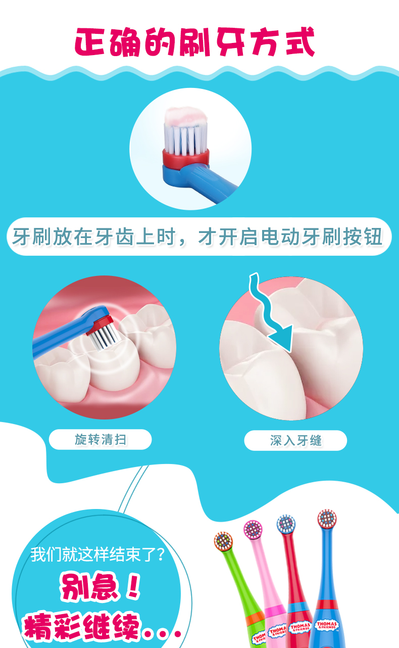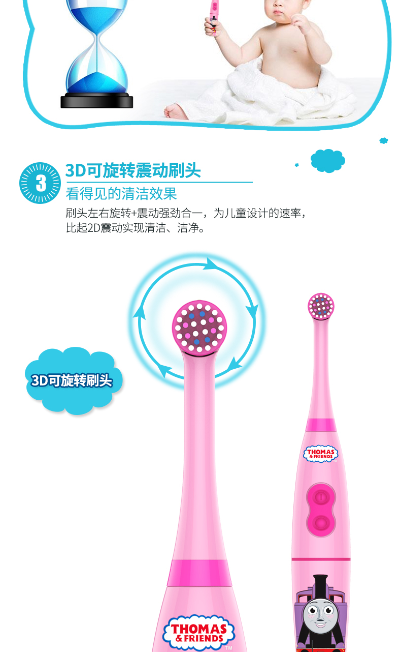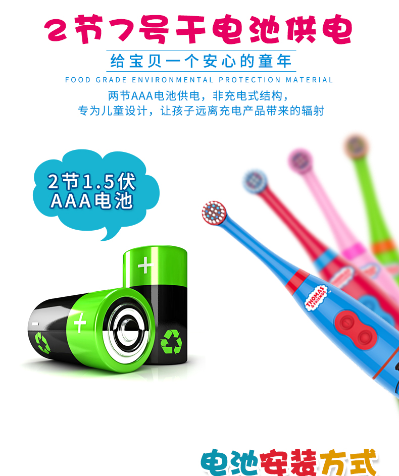 托马斯和朋友儿童智能健康牙刷采用美国进口杜邦细软弹力抑菌刷毛,顶部精密打磨成圆形,0.5mm刷毛高度差,牙缝清扫深入清洁,有效保护孩子稚嫩的牙龈不受伤害,每一根刷毛都经紫外线真空处理,有效抗菌并抑制刷毛病菌滋生。