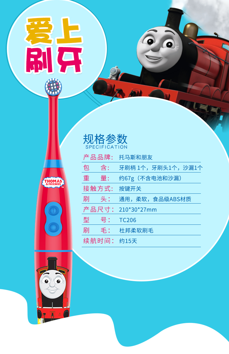 天猫托马斯和朋友嘀嗒互动专卖129元,可领65元优惠券,实付64元到手,最后一款这个价格,送原装刷头5支+儿童牙膏1支。