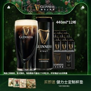 健力士黑啤酒在全世界50多个国家都有酿造。St James’s Gate Brewery啤酒厂是都柏林最著名的标志性景点之一。由大麦,啤酒花,水和酵母四种原料酿造而成。 使用烘焙的大麦酿制的健力士黑啤酒拥有特色的深色,层次感分明,同时散发出烘焙咖啡及巧克力的香气,口感绵密顺滑,完美融合了麦芽甜味,啤酒花甘苦味及烘焙的焦香味,酒精度是4.2%度,原麦汁9.9°P规格是440ml*12罐/箱。