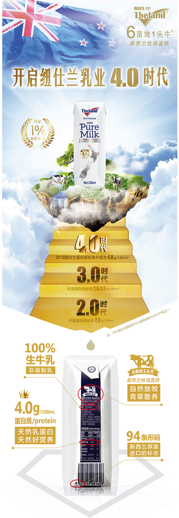 这款纽仕兰 4.0g乳蛋白全脂纯牛奶,新西兰原装进口,是纽仕兰的新系列产品,奶源是新西兰天然牧场直供,在当地生产罐装,是皇后镇希尔顿酒店的供应商,健康无污染的环境+草饲喂养,为奶牛们提供了优质的环境。