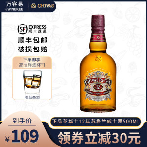 天猫万客易酒类专营店139元,下单立减2元,可领30元优惠券,实付107元到手,规格为500ml,下单赠威士忌酒杯,顺丰包邮,破损包赔。