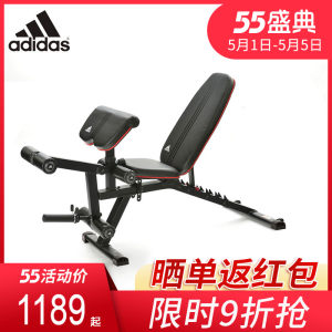 这款阿迪达斯ADBE-10238家用健身椅,是一款多功能卧推凳,配备有可调节二头肌板垫、铃片杠铃负重架、靠垫调节架、坐垫调节架,可以配合完成肱二头肌训练、背部肌群、三角肌训练、斜方肌训练、胸肌训练、腹肌训练、大腿肌群训练。