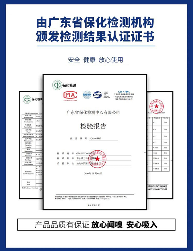 萃取薄荷脑、桉油、冰片等植物精华,不含酒精、二氧化硅,不含尼泊金酯类防腐剂,经过安全检查,使用健康放心。
