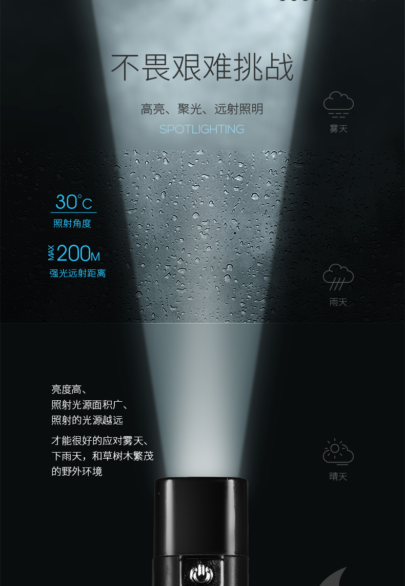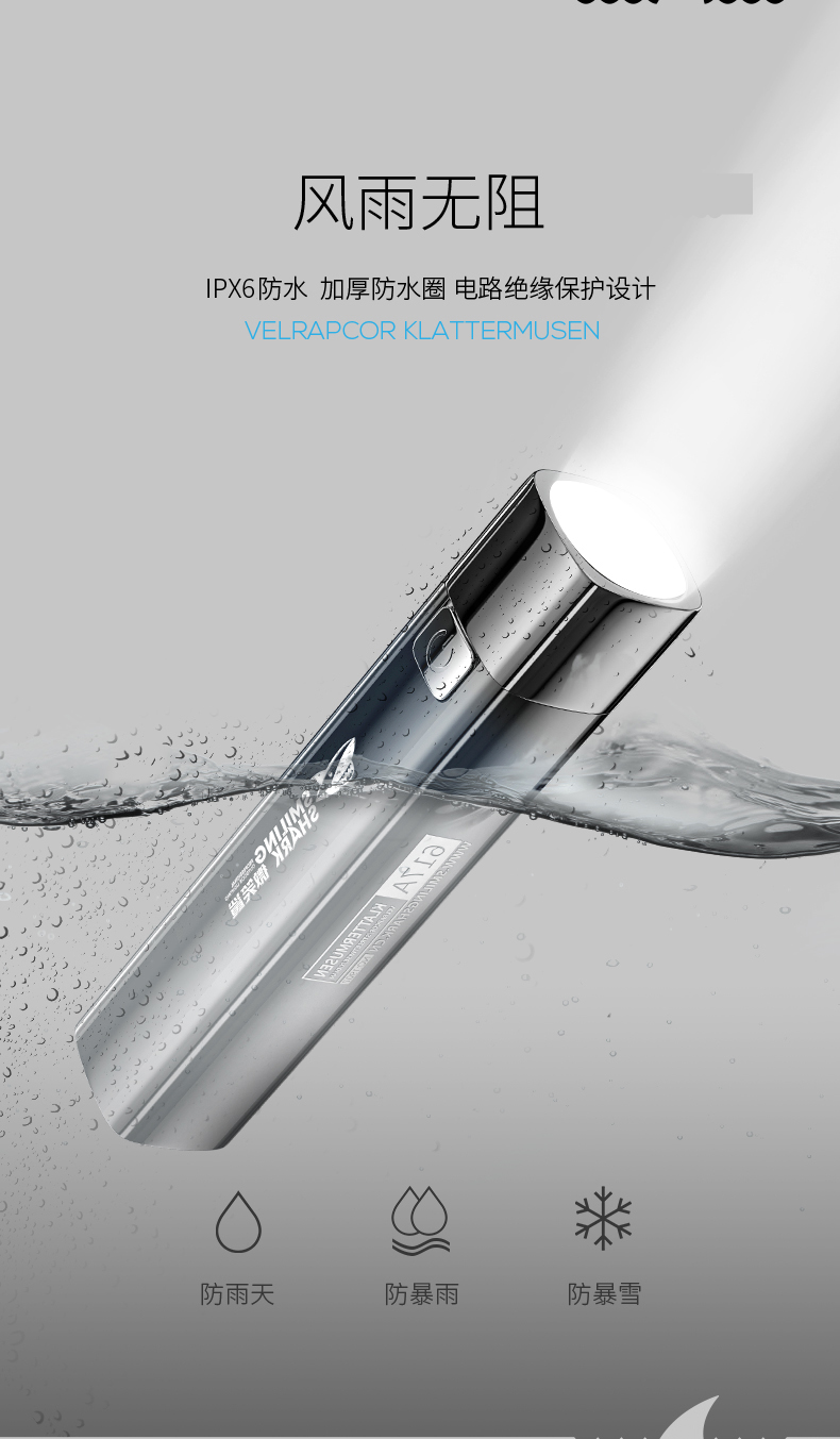 Outdoor Research强光手电,升级G3大功率灯珠,200米强光远射距离,50㎡范光范围,可以应对雾天、雨天,和草树木繁茂环境。有强光、弱光、爆闪三档可选;鲨鱼鳃式多段式散热系统,内置加厚防水圈,IPX6级防水,风雨无阻有效保护电路,内置18650电池可续航6-10小时,除了照明、还可做临时充电宝,日常随身携带、野外郊游探险使用非常方便。