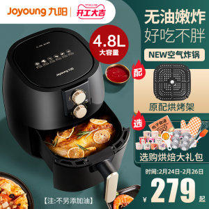 内腔是一体式设计,有不粘油涂层,炸篮和炸锅运用分离技术,按下释放按钮,轻松分离炸蓝和锅底,不粘油更易清洗;锅内容量是4.8L,能满足6-8人可用,一般的空气炸锅只有2L。