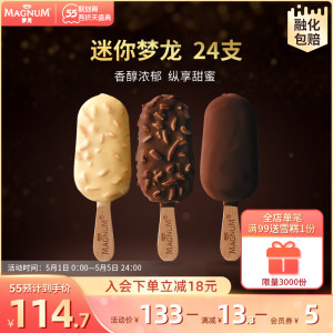 迷你梦龙,小身材同样的口味,24支含,经典香草口味12支、松露巧克力6支、白巧克力6支,42/43g/支,一般正常大小为65g/支。迷你款小巧身材,刚刚好,美味不腻,不至于吃太多,解馋不增加负担~