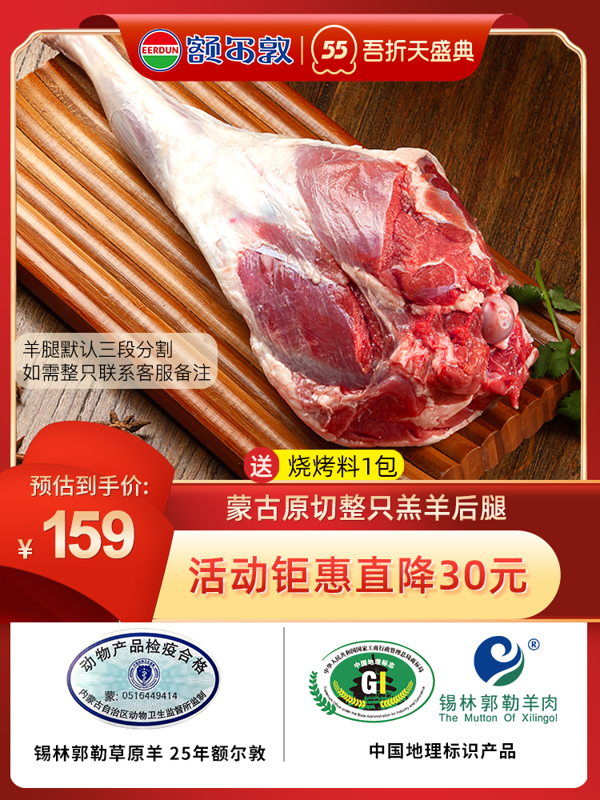 =159元到手,整只羊腿+瘦多肥少+口感鲜香+吃的更放心。
