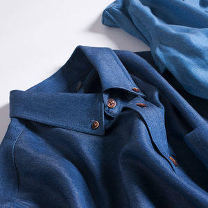 相比普通棉质牛仔衬衣来说,此款衬衣的面料质感更佳,成衣具有丝质的光泽感,垂坠挺拔。牛仔风格休闲气质十足,合体版型设计,经典方领,适用不同年龄段人群。细节上内置科德宝衬布,经久耐穿,伟星树脂纽扣,健康环保。弧形袖口,自由调节纽扣。
