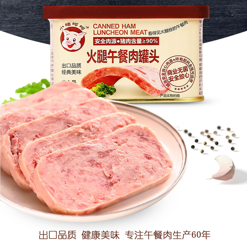 小猪呵呵的工厂是专注于午餐肉事业的,之前有代工长城牌的出口版(昵称“小白猪”),后来出的自己的产品叫小猪呵呵,关键是自己的产品比代工的出口版还强一丢丢,所以在网上还是蛮火的,在各种午餐肉评测里,小猪呵呵都是前几名,口碑上佳。