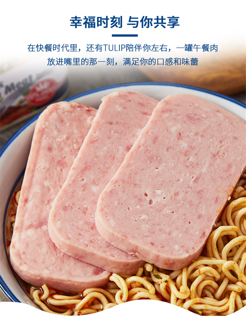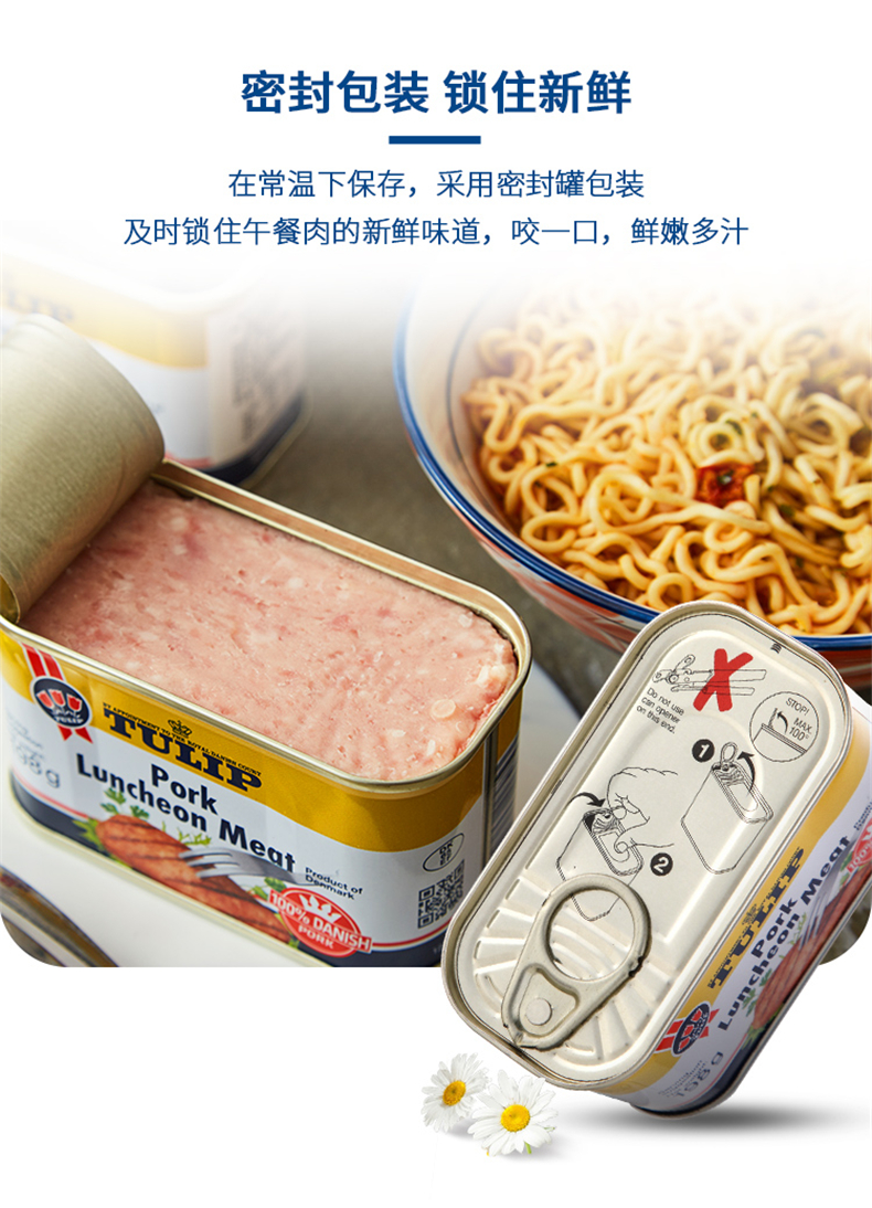 午餐肉选用丹麦本土猪肉制作,猪肉含量90%以上,肉质紧实有弹性,口感细腻有嚼劲,少盐不含味精,营养更健康。每头猪每罐肉都可追溯本源。严格遵守欧盟食品安全标准和BRC、IFS等国际权威食品安全标准,坚持自然风味,不含瘦肉精、不含激素、不使用抗生素防病及无杀虫剂、无重金属残留的四大安全质保,吃起来更放心