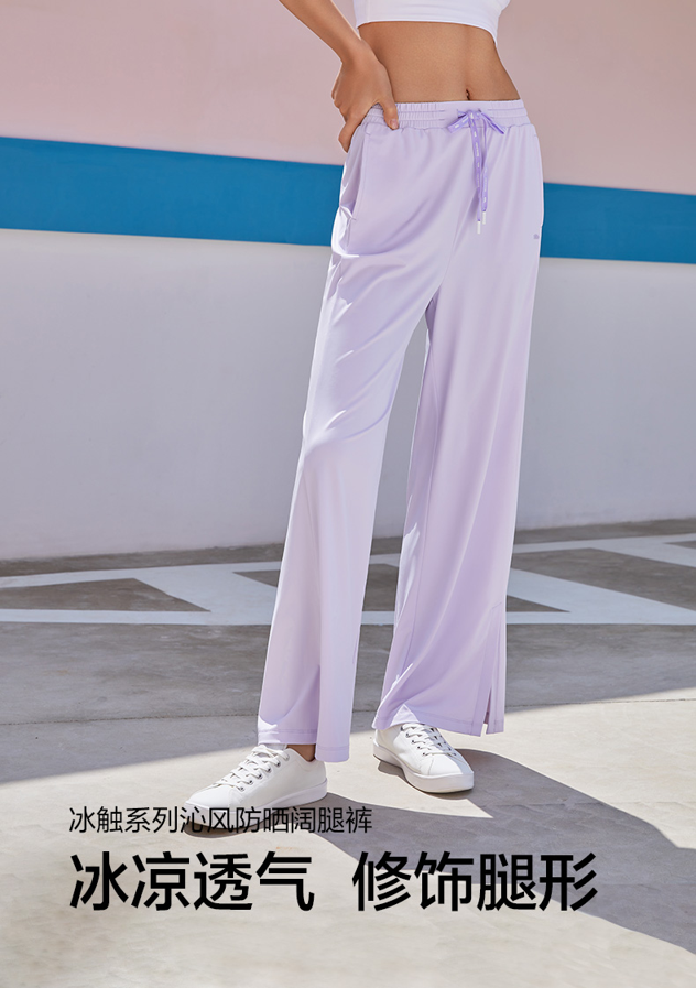 细节上:宽松阔腿设计,质感柔软顺垂,修饰身材拉长腿部线条,包容各种身材胖瘦都能穿,4cm加宽微压弹力裤腰搭配可调节抽绳,穿着舒适不勒,裤脚开叉设计,高抬腿大跨步也无束缚感,行走间小漏肌肤、性感十足。