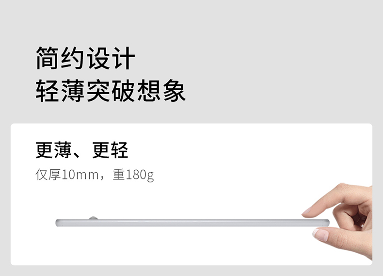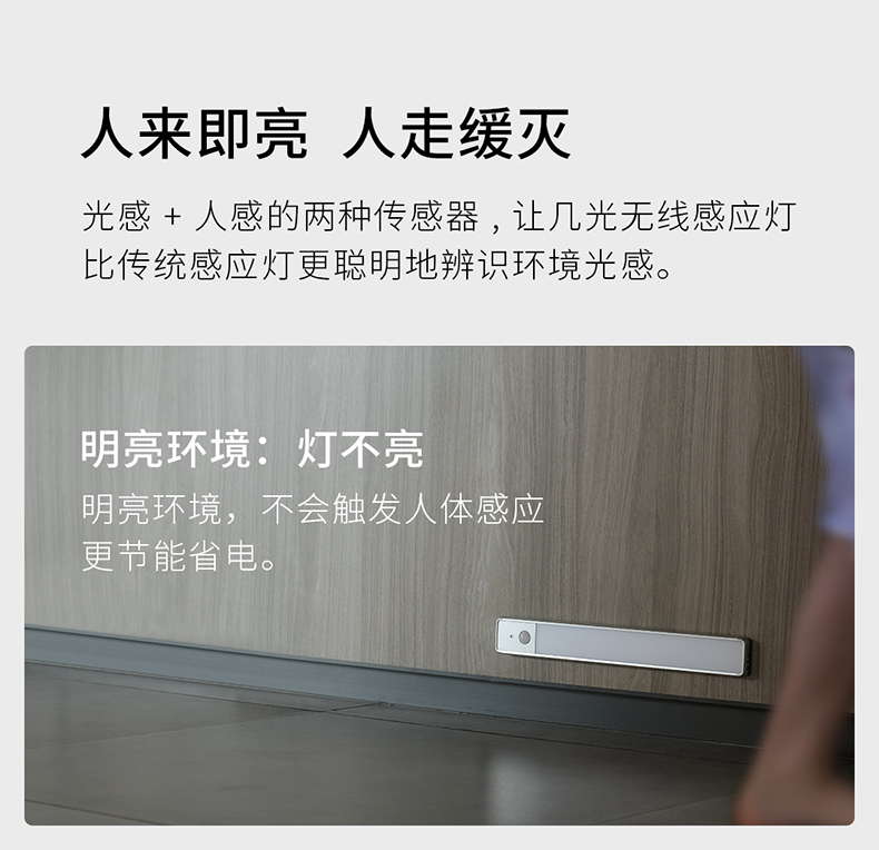 这款智能无线感应灯,小米生态链ezvalo几光出品,高颜值超纤薄设计,厚度只有10mm,采用LED侧发光技术,光源通过扩散板进行缓冲,输出的光线均匀、温和不刺眼;