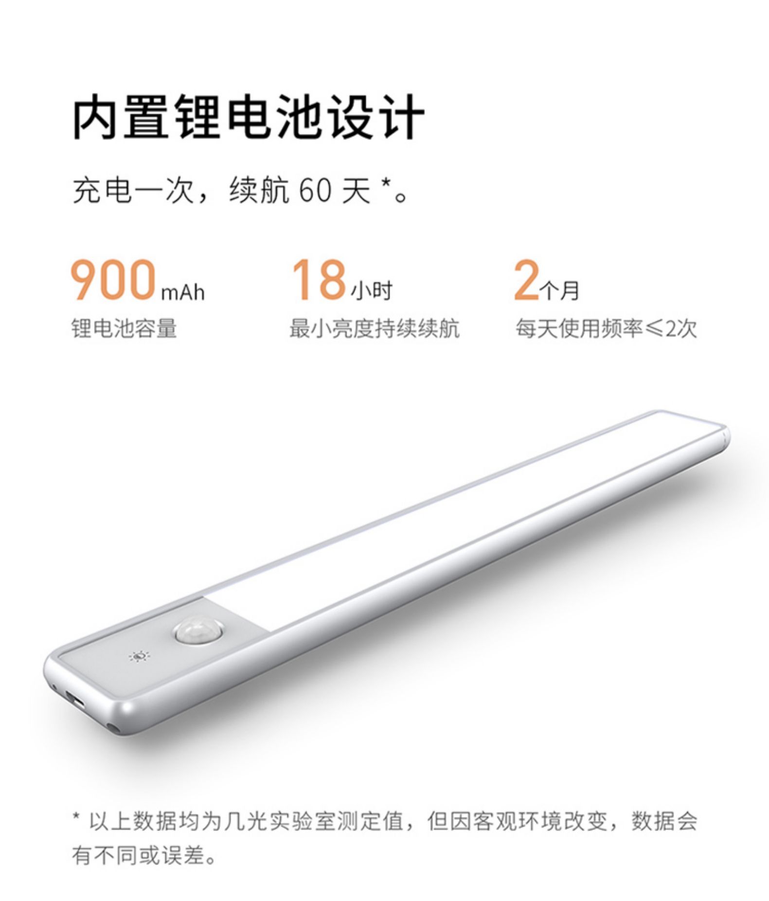 细节上:有白光、暖光可选,外壳采用氧化铝材质,充满质感银色百搭各种风格装修,内置900mAh锂电池,无线束缚,最小亮度可续航18小时,居家正常使用约可用2个月;
