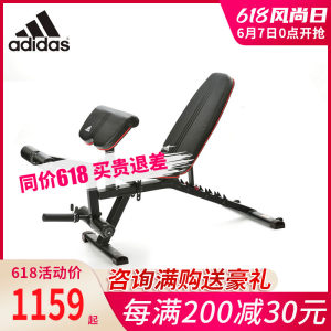 这款阿迪达斯ADBE-10238家用健身椅,是一款多功能卧推凳,配备有可调节二头肌板垫、铃片杠铃负重架、靠垫调节架、坐垫调节架,可以配合完成肱二头肌训练、背部肌群、三角肌训练、斜方肌训练、胸肌训练、腹肌训练、大腿肌群训练。