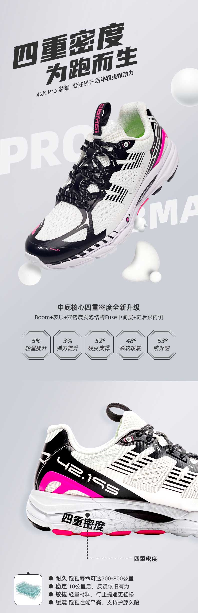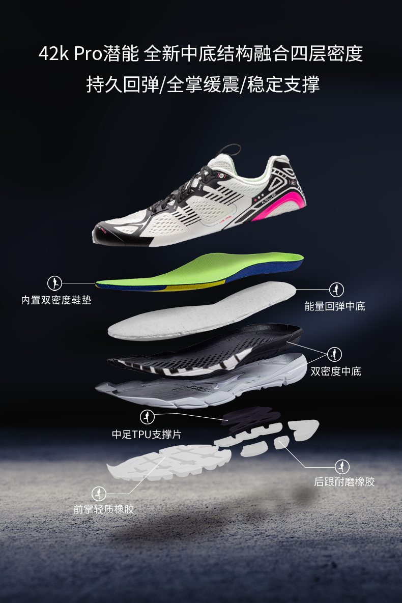 这双是2020年初上市的42公里新款专业马拉松跑步鞋,专为一般跑步鞋后半程会动力不足的问题所设计,能更持久支撑,后劲强悍。