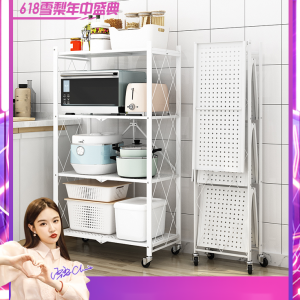 这款多功能置物架,可折叠免安装,展开轻松,折叠后仅8cm厚,置放灵活。带万向轮移动,带刹车停放稳,功能强大,解决置物架安装不好移动等难题,让你的居家生活更轻松。
