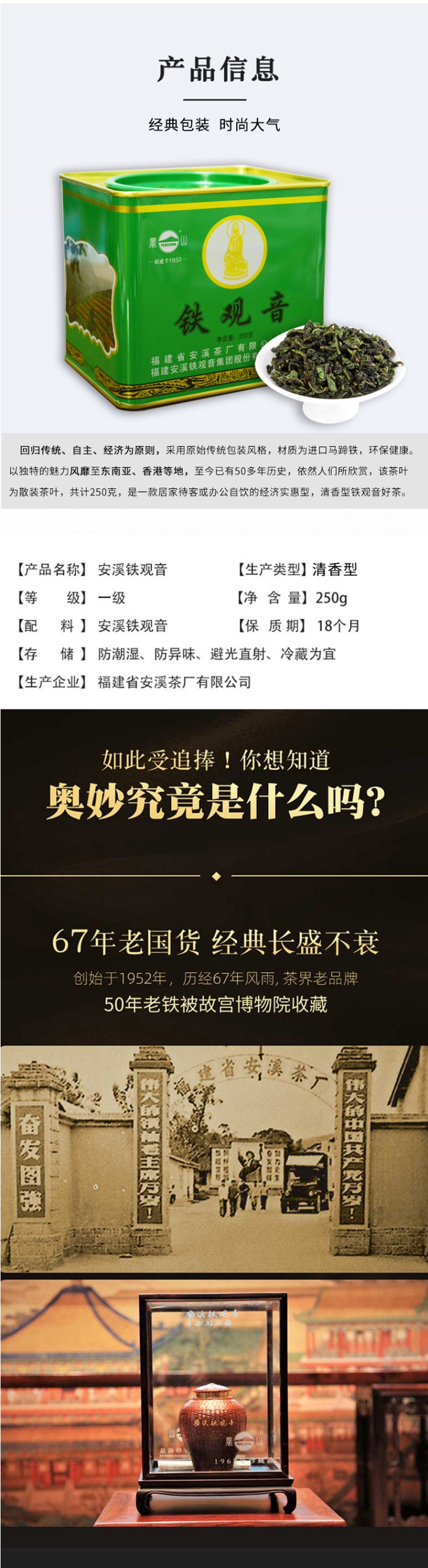 福建省安溪茶厂有限公司出品,这应该是全国最有实力的乌龙茶企业,是全国乌龙茶精制加工业中唯一拥有自营进出口权、唯一产品荣获国家金质奖并被指定为钓鱼台国宾馆专用茶的企业,产品70%供外销,30%供内销,畅销日本、东南亚、俄罗斯、美国等30多个国家和地区。