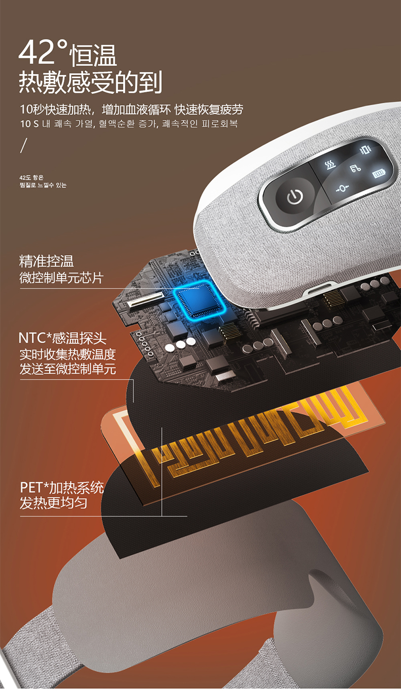 42°C恒温热敷,舒缓眼周疲劳。研究表明,这是十分适合人体的舒适温度,睡前进行热敷,能有效加速眼周血液循环,缓解眼干眼涩、眼部肌肉酸痛等。