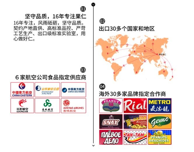 春旺”是临沂富春食品有限公司旗下品牌,成立于2001年12月,是一个专业生产咸味花生及其他果仁制品的休闲果仁食品企业, 是美国绅士坚果、麦德龙..指定供应商,也是中国东方航空,山东航空公司,中国南方航空等6家航空公司食品指定供应商,产品远销全球30多个国家,深受广大经销商和消费者的喜爱。