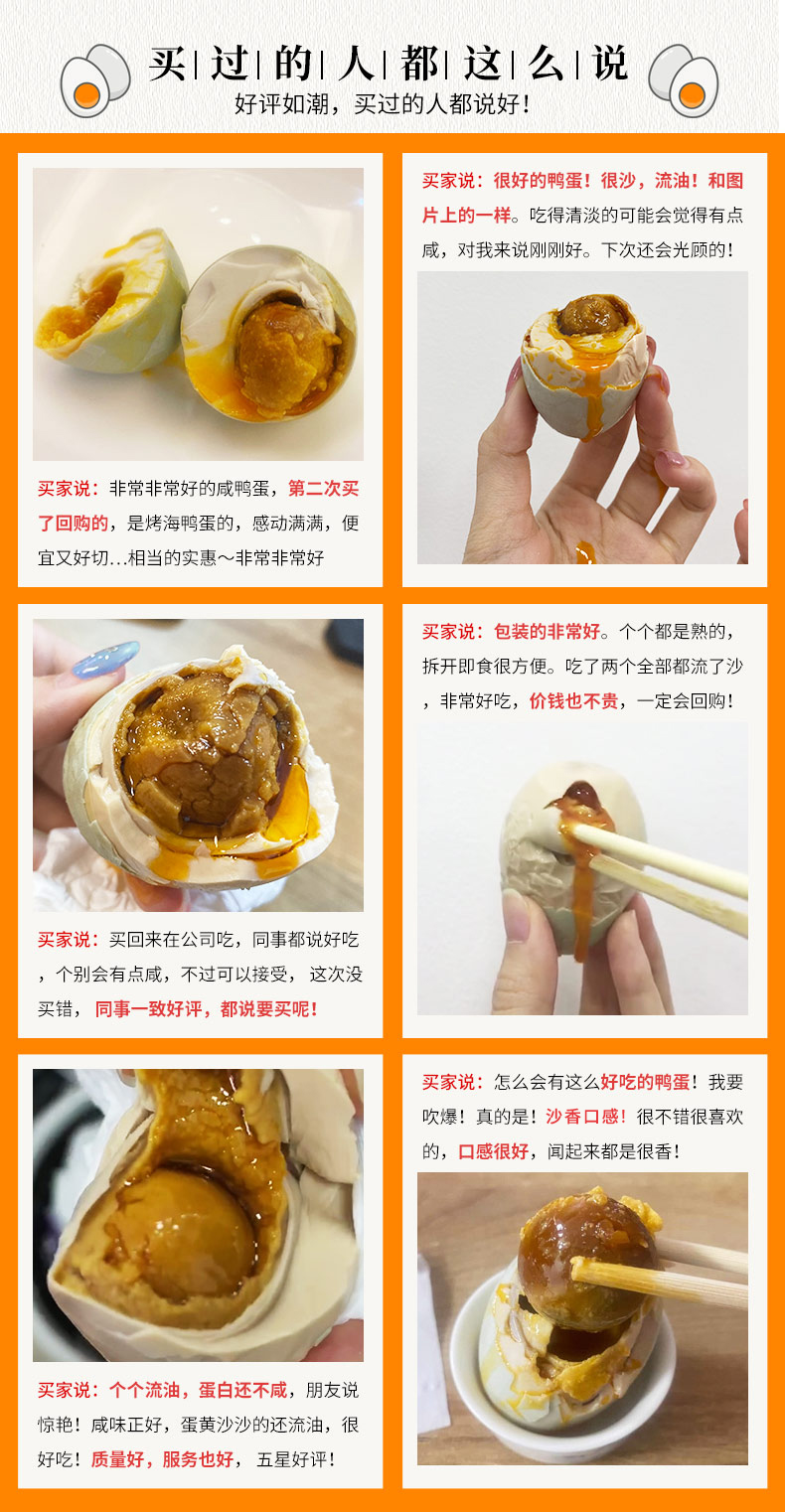 天猫捣蛋先生旗舰店32.9元,可领6元优惠券,实付26.9元到手,精选优质海鸭蛋,流油起沙,自然醇香,蛋黄松沙质地,细腻爽滑,口感咸香适中,古法腌制,手工制作,高温杀菌,安全卫生。
