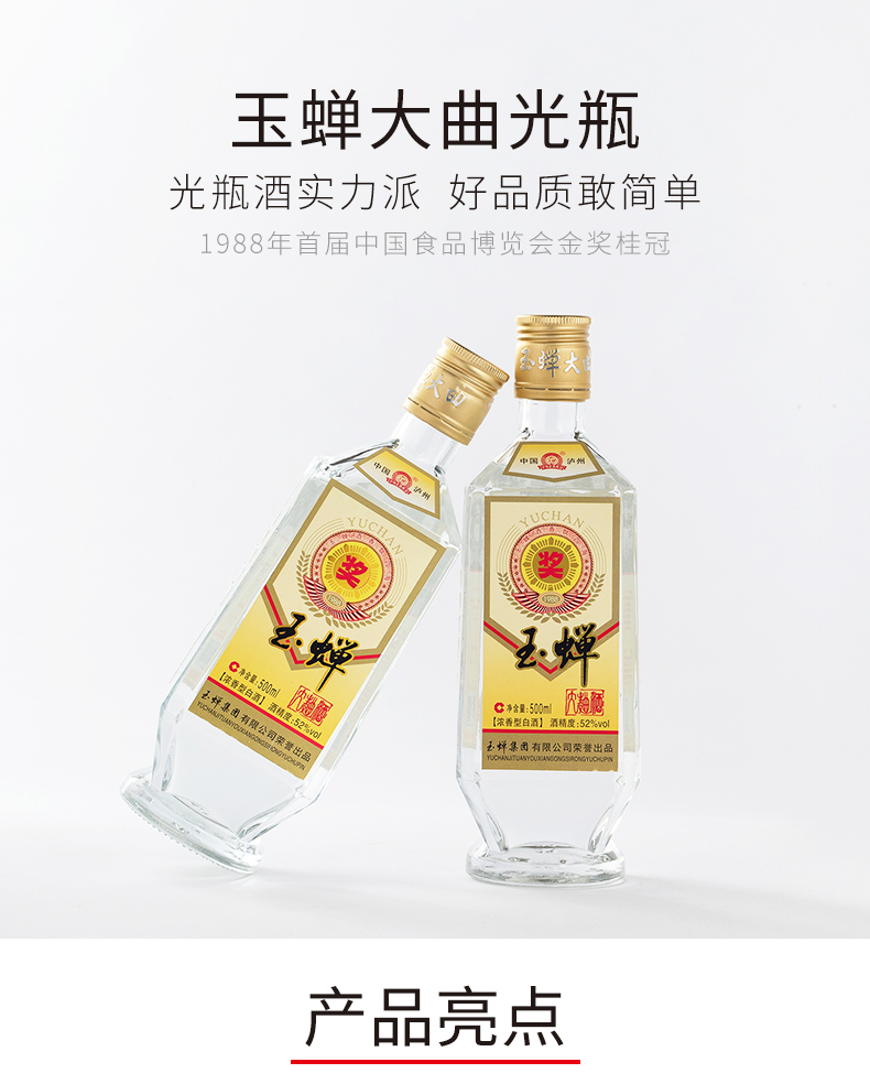 玉蝉酒以其“入口甜净、浓香醇柔、饮后清爽、余味悠悠”的风格,享誉海内外。三次蝉联国家商业部金爵奖,首届中国食品博览会奖,被原全国人大常委会副委员长十世班禅钦定为“进藏专用酒”,成为中国酒界获此殊荣的品牌。