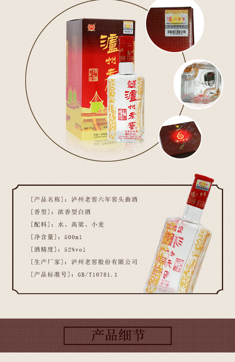 泸州老窖头曲是我国享有盛誉的名酒之一,素以“醇香浓郁,清洌甘爽,回味悠长,饮后尤香”的独特风格,闻名古今,畅销中外。酒体无色透明,窖香浓郁,清洌甘爽,饮后尤香,回味悠长。具有浓香、醇和、味甜、回味长的四大特色。
