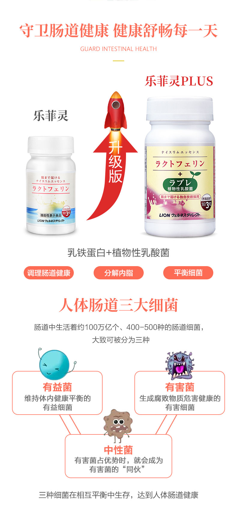 “乐菲灵”由日本狮王通过独特技术独立研发而成。因主要成分为乳铁蛋白、所以取名自乳铁蛋白英文(=lactoferrin)音译,加上独家涂层技术,保证乳铁蛋白成功送达肠道。乐菲灵在日本国内乳铁蛋白健康食品市场,连续8年稳居销售冠军。并且受到连续累计145万用户的好评与支持。