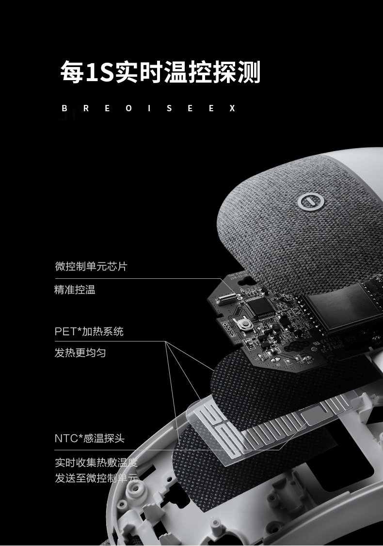 恒温热敷:2-50度高低可调,内置NTC感温探头,实时收集热敷温度精准控温,热敷促进微循环,释放眼周压力,