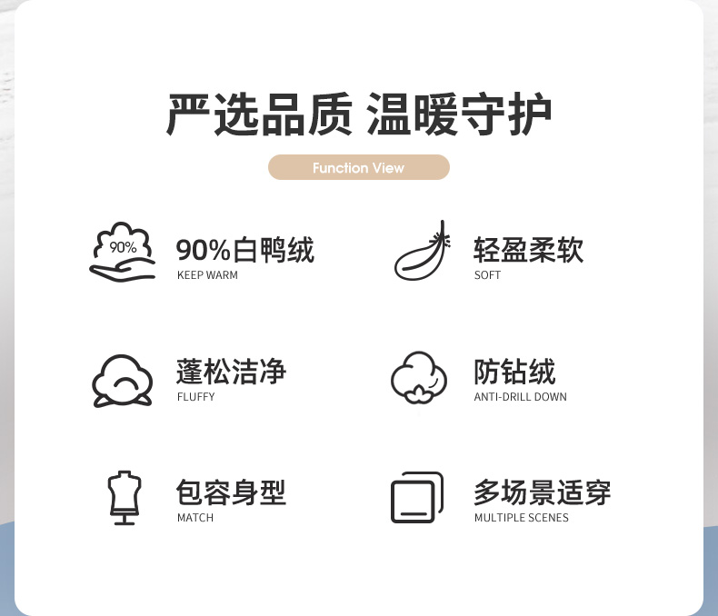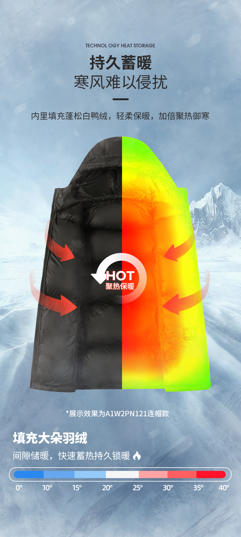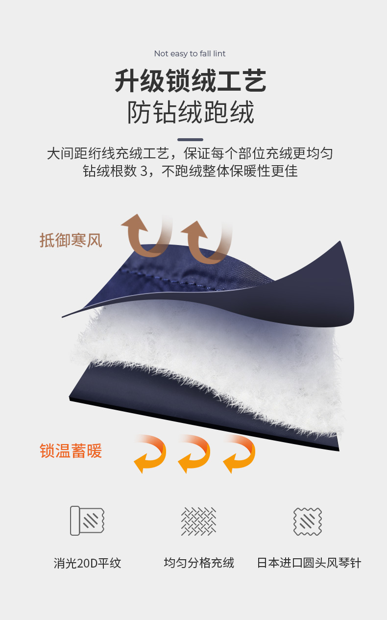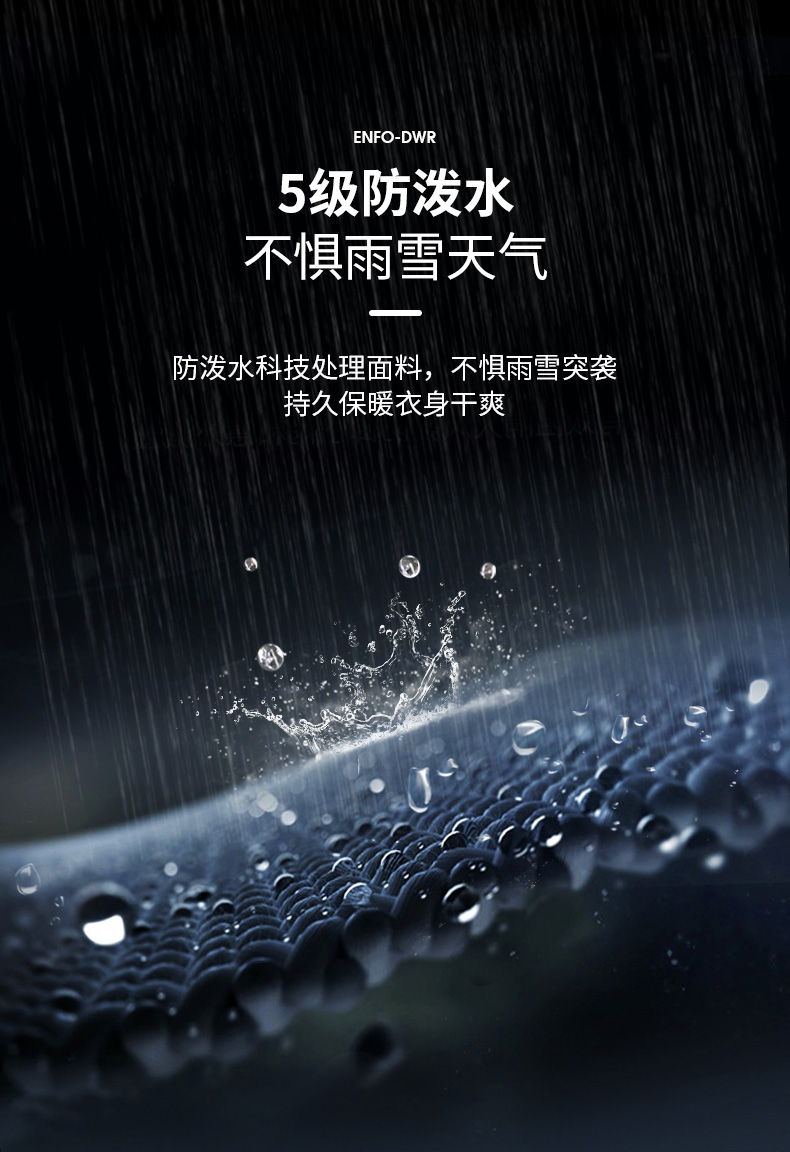 面料方面采用20D平纹面料,手感轻盈顺滑,体感舒适自在,面料表面科技5级防泼水处理,不惧雨雪,持久保持身体干爽。