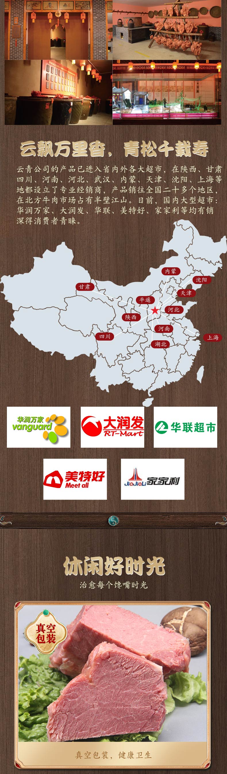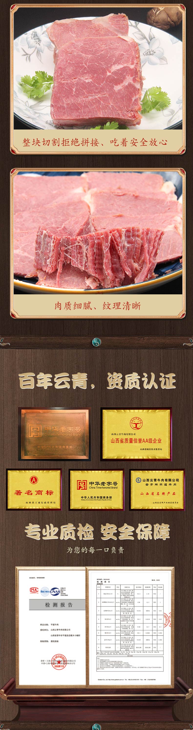 平遥牛肉,山西省平遥县特产,中国国家地理标志产品。西云青牛肉有限公司是由成氏家族创办的,创建于清嘉庆三年(1798年),是平遍古城有名的百年老字号,加工的牛肉绵香可口,远近闻名。被国家商务部认定的10家中华老字号之一。