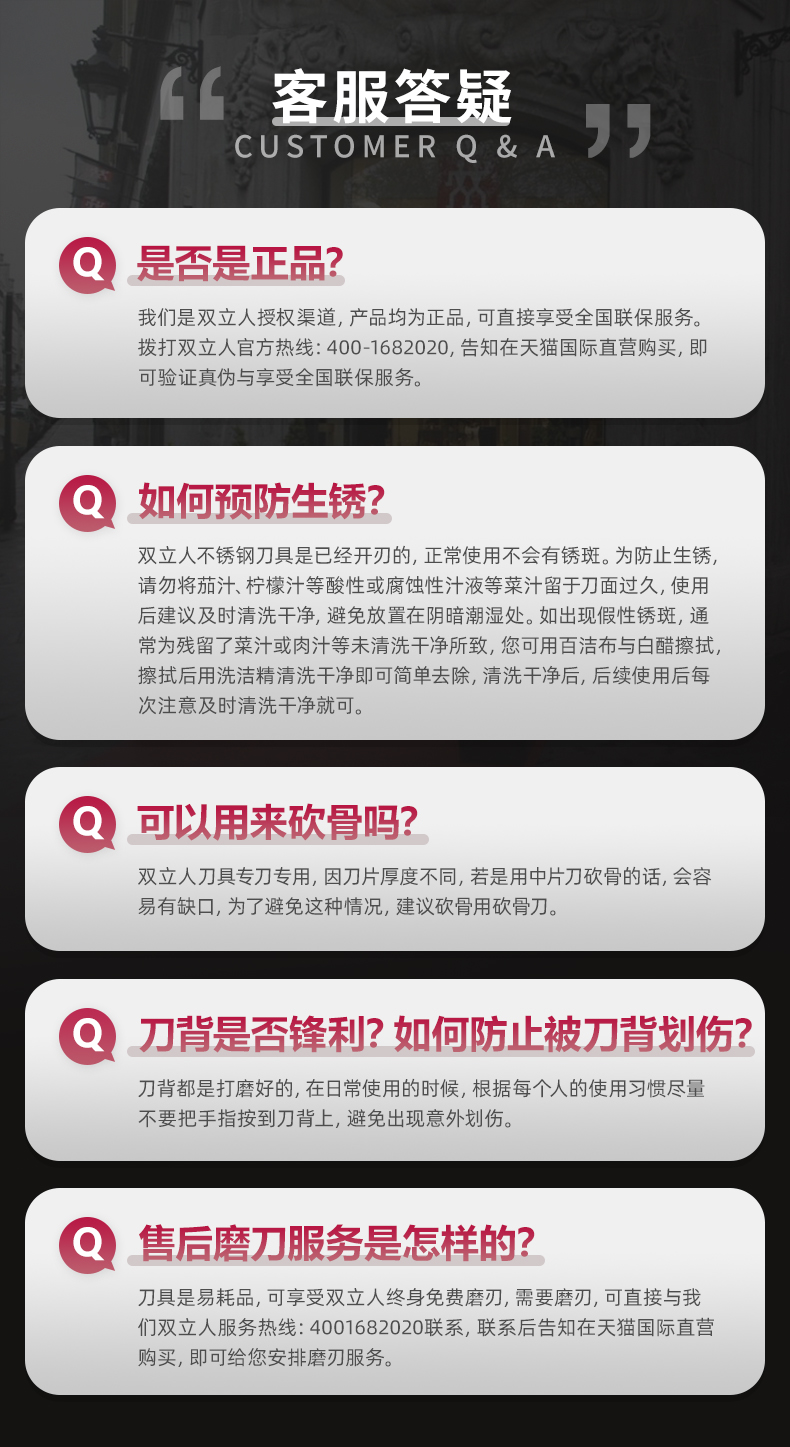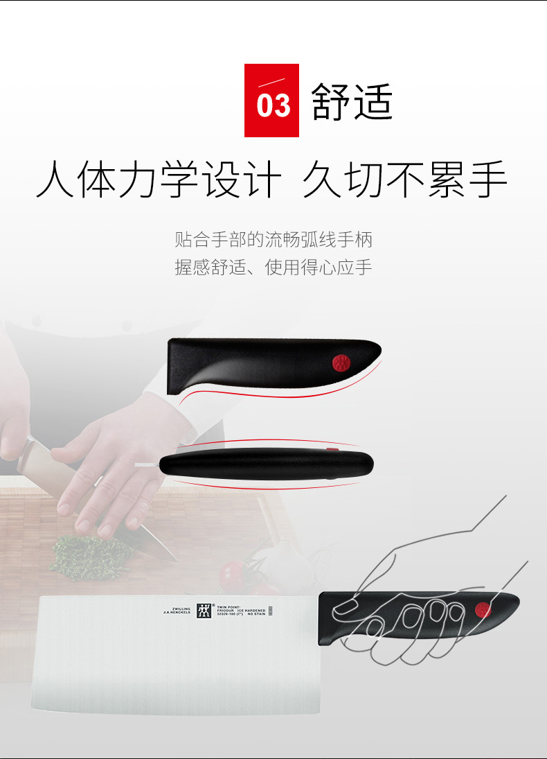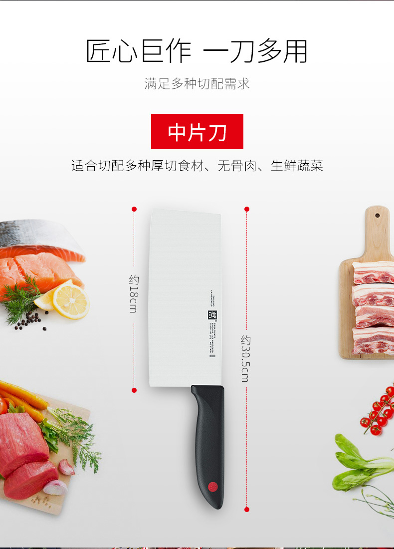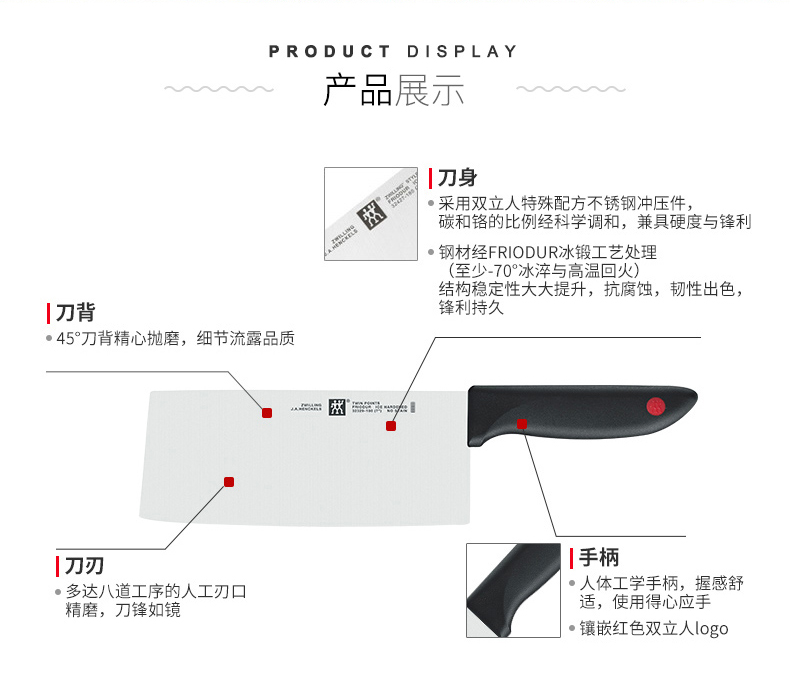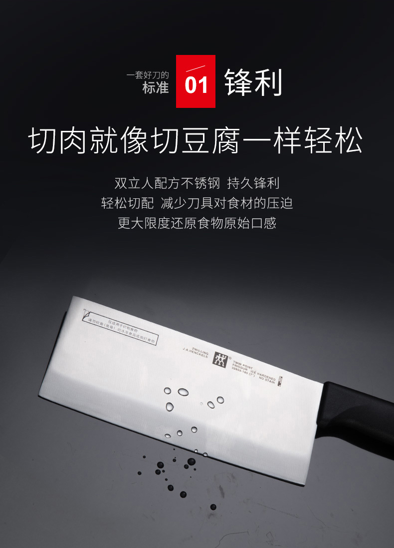 这款是双立人的中式切片刀,是国内厨房里用的最频繁的刀具,采用双立人特殊不锈钢冲压件碳和铬的比例达到较佳平衡,兼具硬度和锐利。经FRILDUR冷锻工艺处理,结构更加稳定。刀具抗腐蚀、韧性十足,刀刃锋利。手柄握感舒适