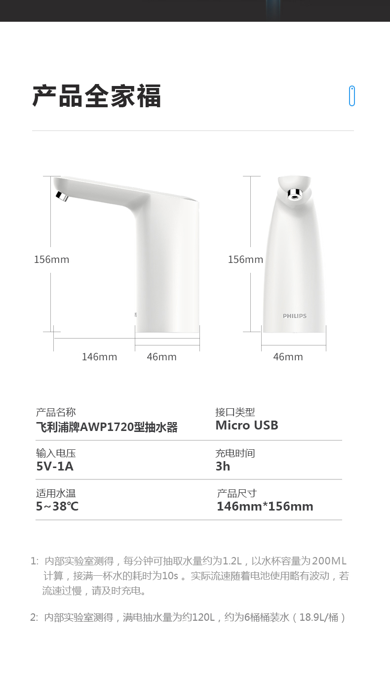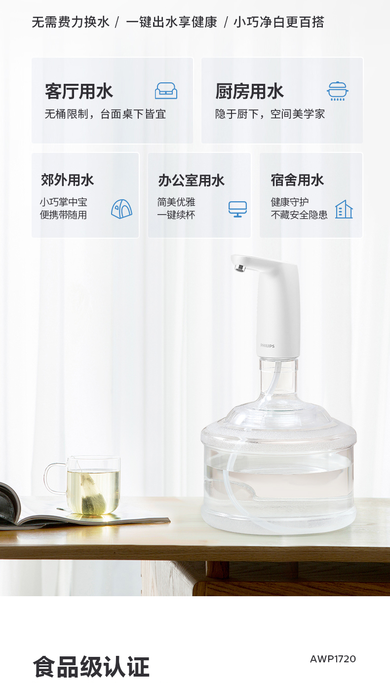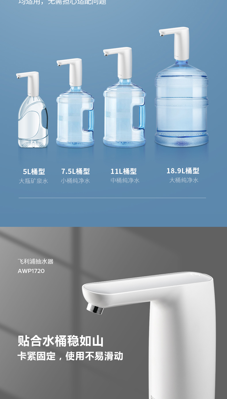 天猫飞利浦水护盾专卖店99元,可领20元优惠券,实付79元到手,飞利浦新品电动抽水器,一体成型,密封不漏水,不易滋生细菌,静音降噪设计,整机食品级安全认证,适用于市面大多桶装水,卡和稳固不易滑动脱落,一键出水反应灵敏,出水快速免久等。60秒自动关停,防止意外安全有保障。