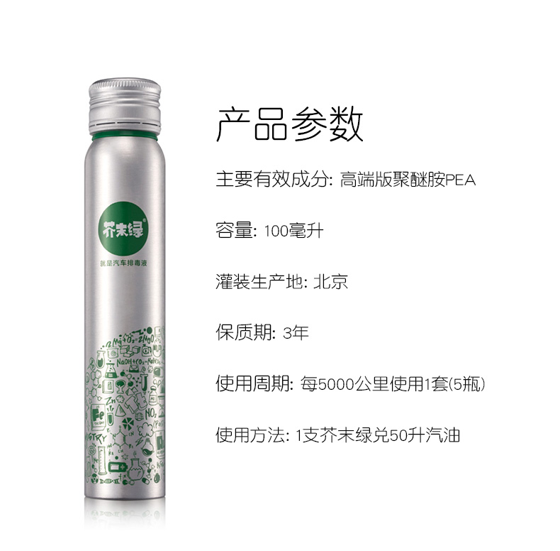 使用方法:每5000公里使用1套,1支芥末绿可以兑50升汽油。