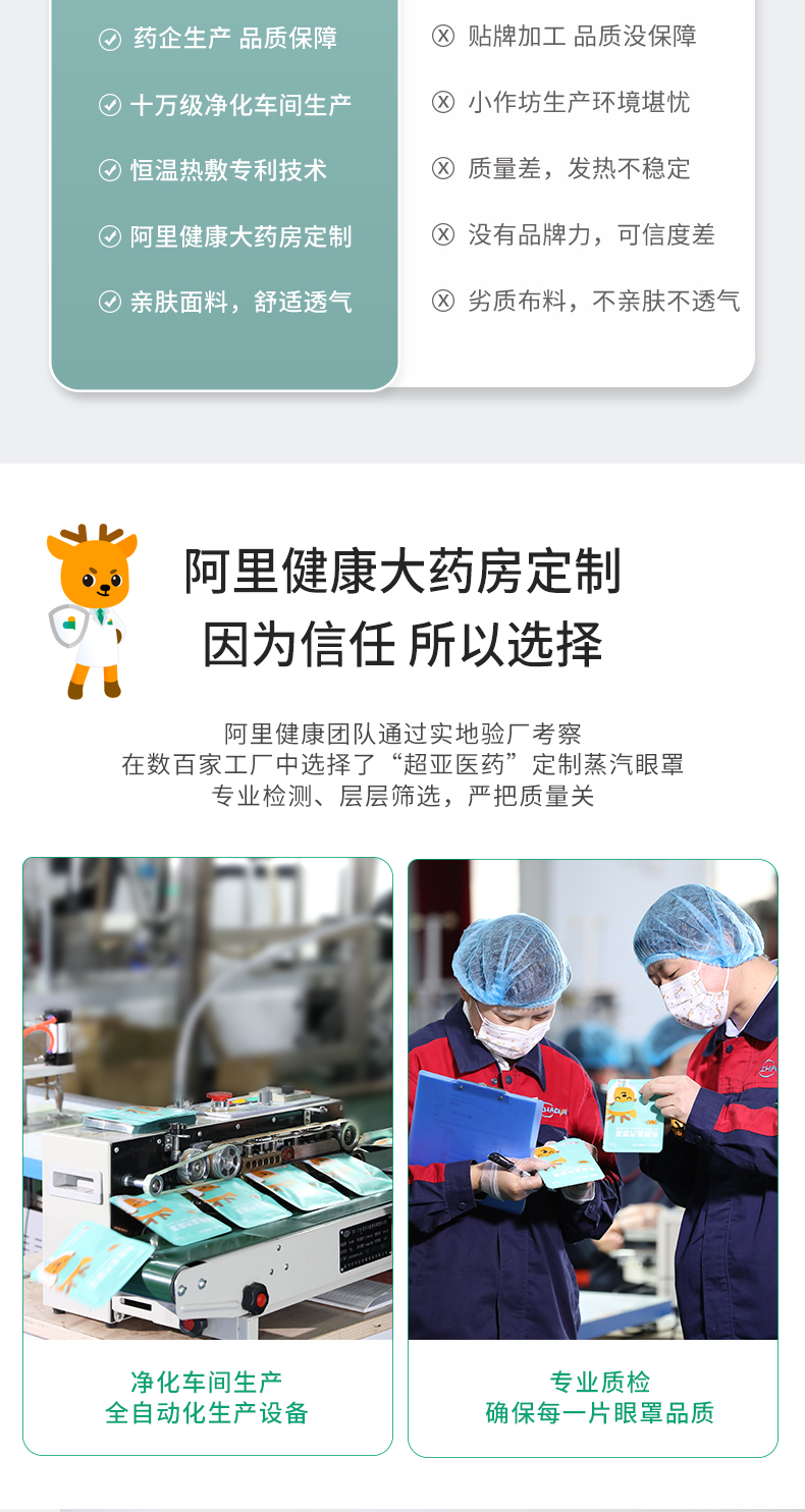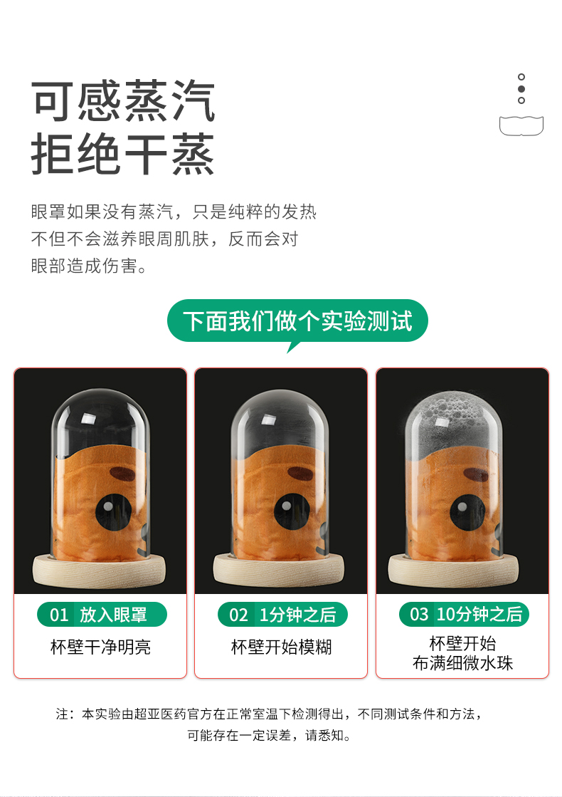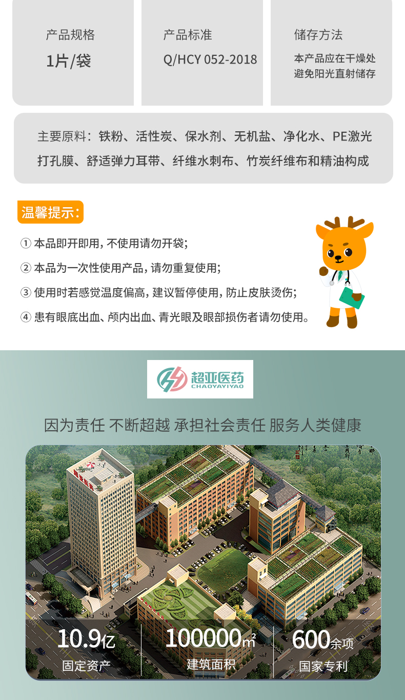 这款超亚医药 恒温热敷蒸汽眼罩,十万级净化车间生产,恒温热敷专利技术控制在41℃左右,持续25分钟,温和不灼热,使用后眼部满满的水润感。