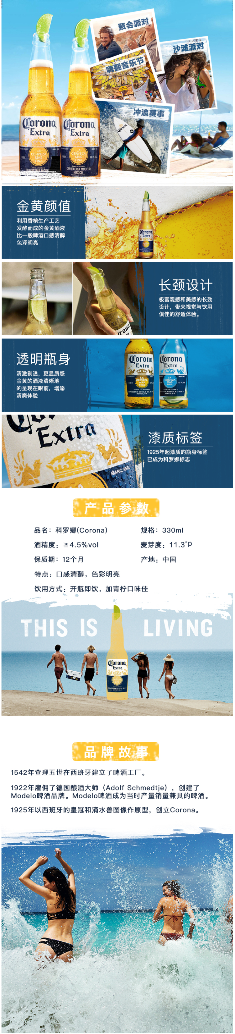 科罗娜啤酒以其独特的口味成为世界上销量第一的墨西哥啤酒,美国进口啤酒排行第一名,由摩洛哥啤酒公司生产。这款CORONA 精酿小麦啤酒 墨西哥原装进口,酒精度≥4.5vol 麦芽度11.3°P。