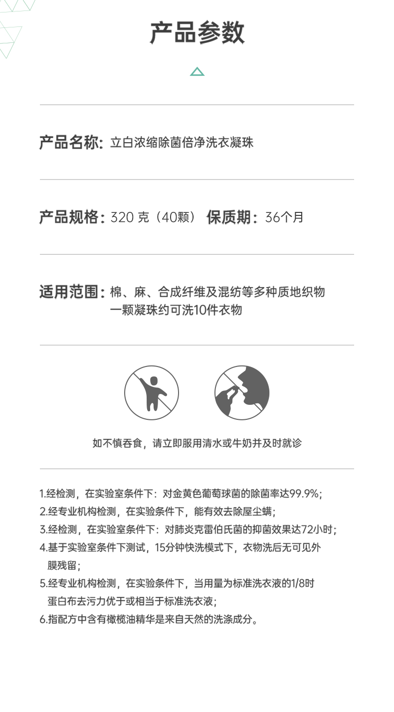 99.9%除菌率 72小时长效抑菌 8倍洁净力。一颗洗一桶比买洗衣液还划算,8倍清洁力一盒可洗500件。