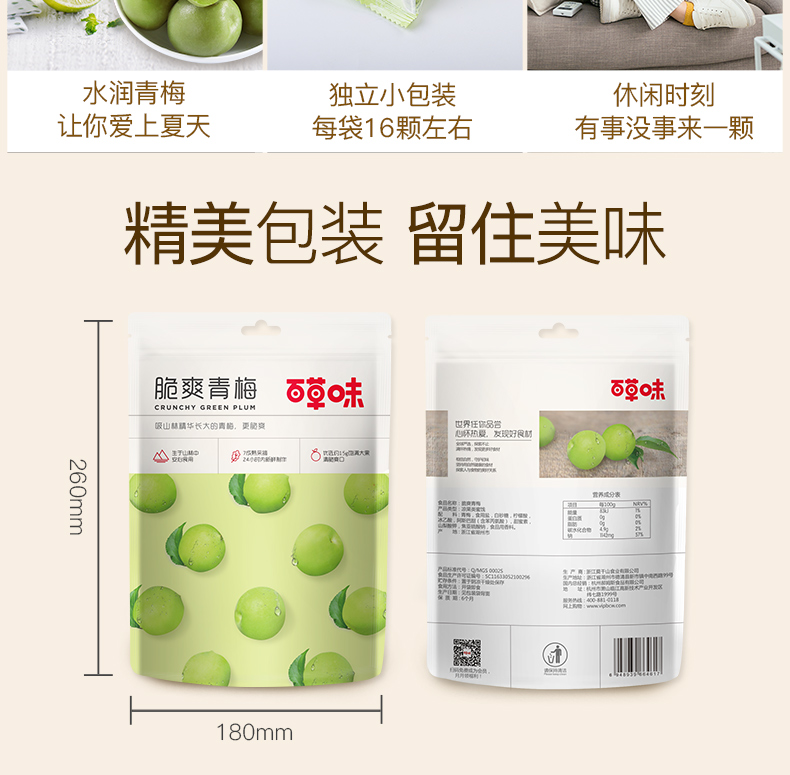 天猫百草味淘道专卖店17.9元,可领1元优惠券,实付16.9元到手,优选A级青梅,个大饱满,颗颗甄选,采摘后24小时内新鲜制作,90%含水量,脆爽多汁,含有多种天然有机酸,对人体有诸多益处,酸甜好滋味,没事儿来一颗,悠享美好时光。