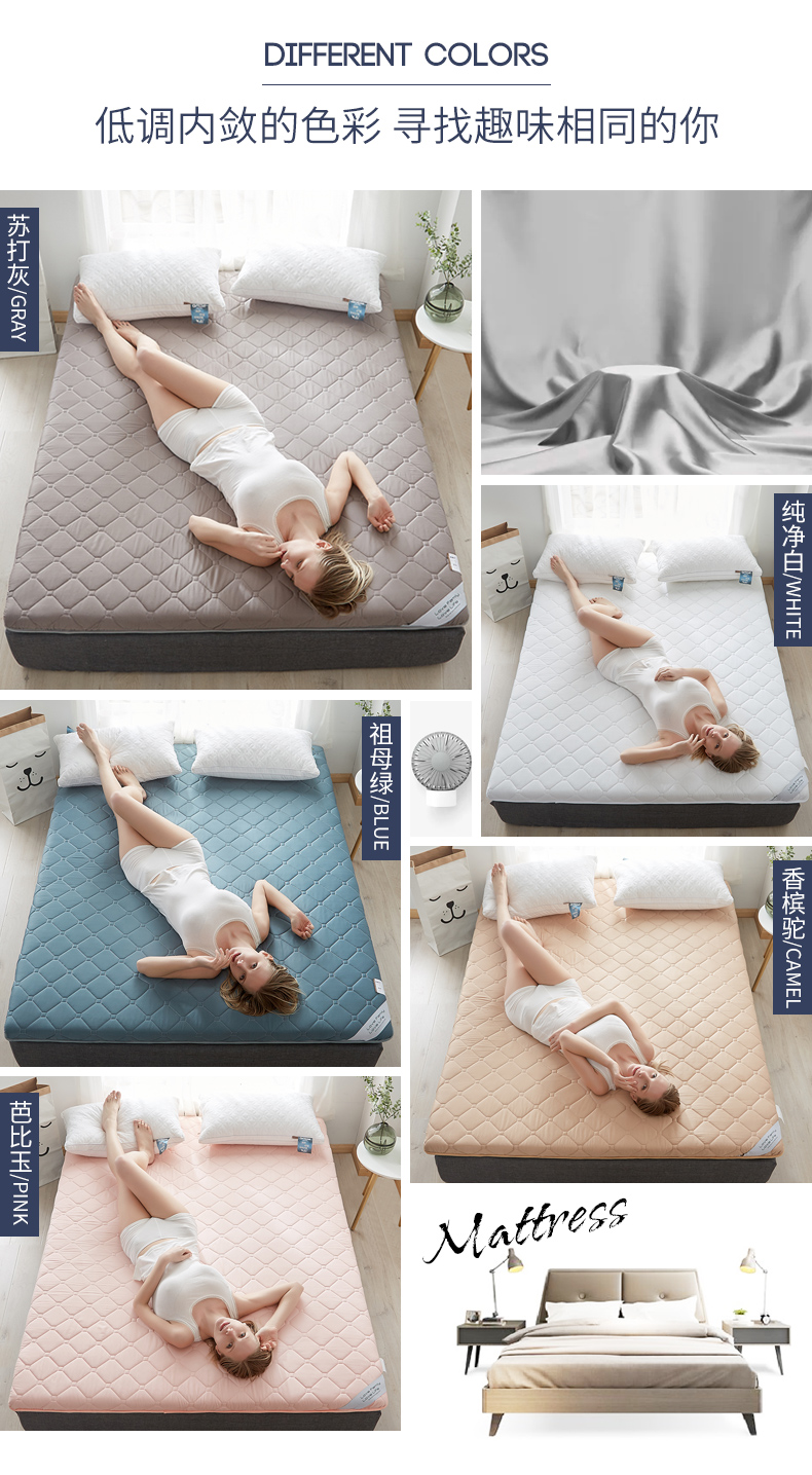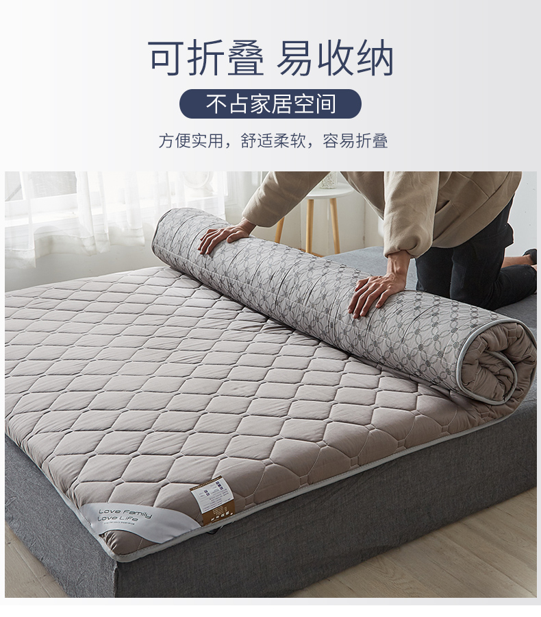 这款榻榻米床垫,采用60支贡缎长绒棉面料,相比普通纯棉面料,触感更加细腻顺滑,柔和没有糙感,吸湿透气性强,而且具有良好的光泽,带来舒适的睡眠享受。