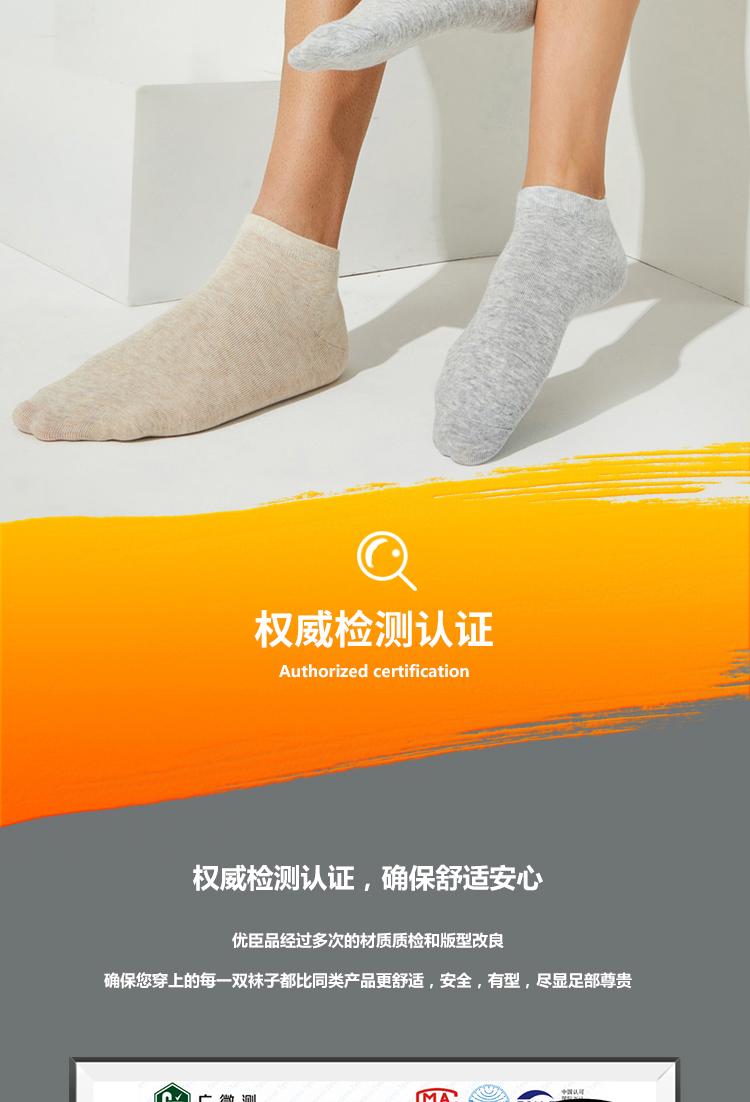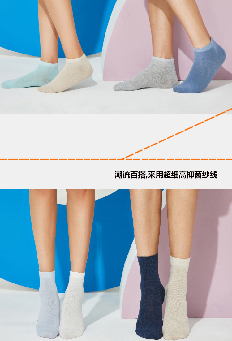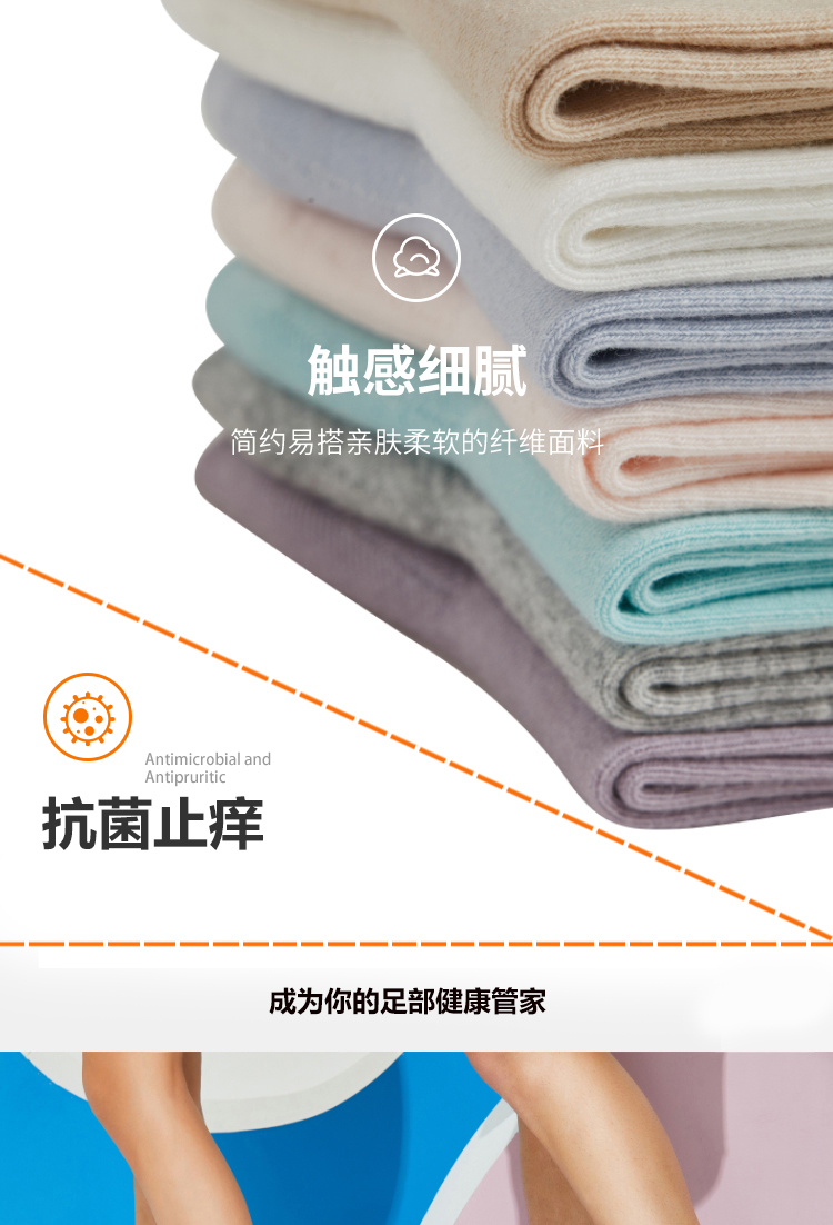 这款袜子面料以65.2%棉为主,混31.2%聚酯纤维,在添加了3.6%氨纶,经过过特殊处理,触感柔软亲肤,拒绝刺痒,抗菌环保健康,袜底无感提织LOGO,高端大气上档次,不影响穿着舒适度。有四大系列:抗菌止痒系列,VC润足系列,天然香薰系列,抑汗吸排系列。采用环保染色更安心~