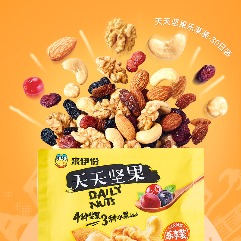 天猫来伊份官方旗舰店139元,下单立减65元,可领10元优惠券,实付64元到手,规格是25g*30包。精选核桃仁,腰果仁,巴旦木仁,榛子仁,蔓越莓干,红葡萄干、黑葡萄干,0添加,非油炸,果香浓郁,爽口松脆。
