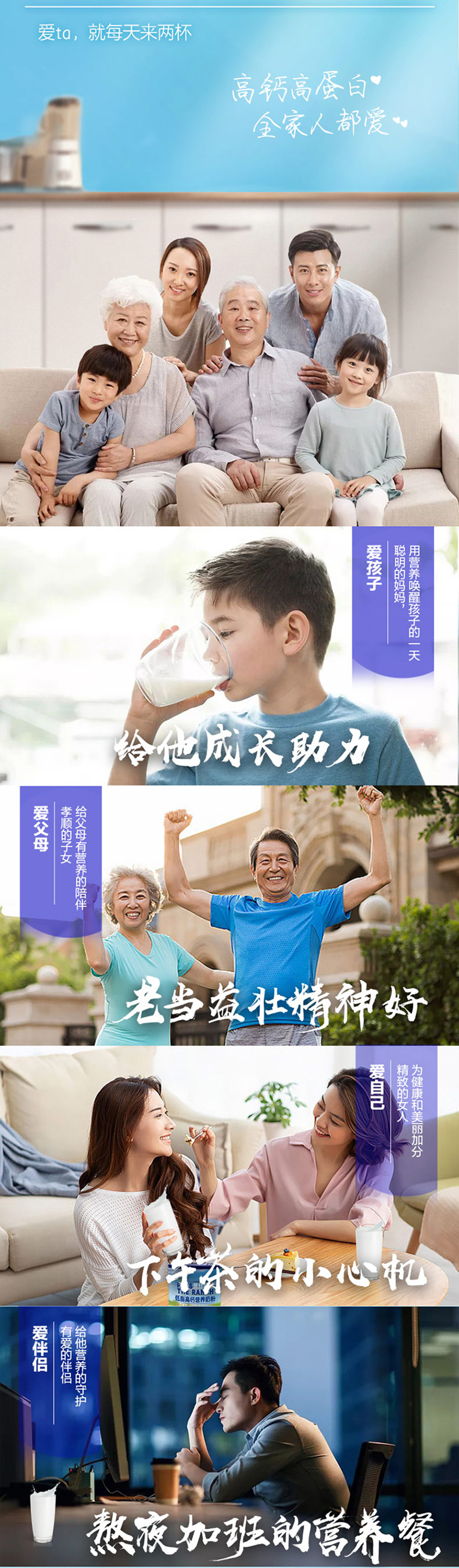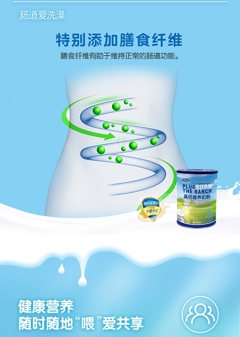 君乐宝宝 优佳牧场高钙奶粉,满足3岁以上人群所需营养。双倍钙含量,高蛋白配方,添加了高膳食纤维。有助于维持正常的肠道功能。满足全家人营养所需。每天来两杯,健康营养,与爱共享。