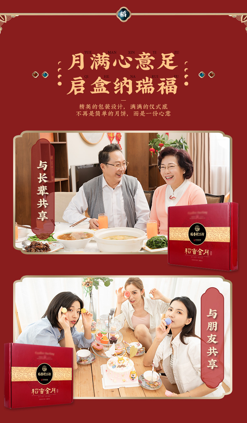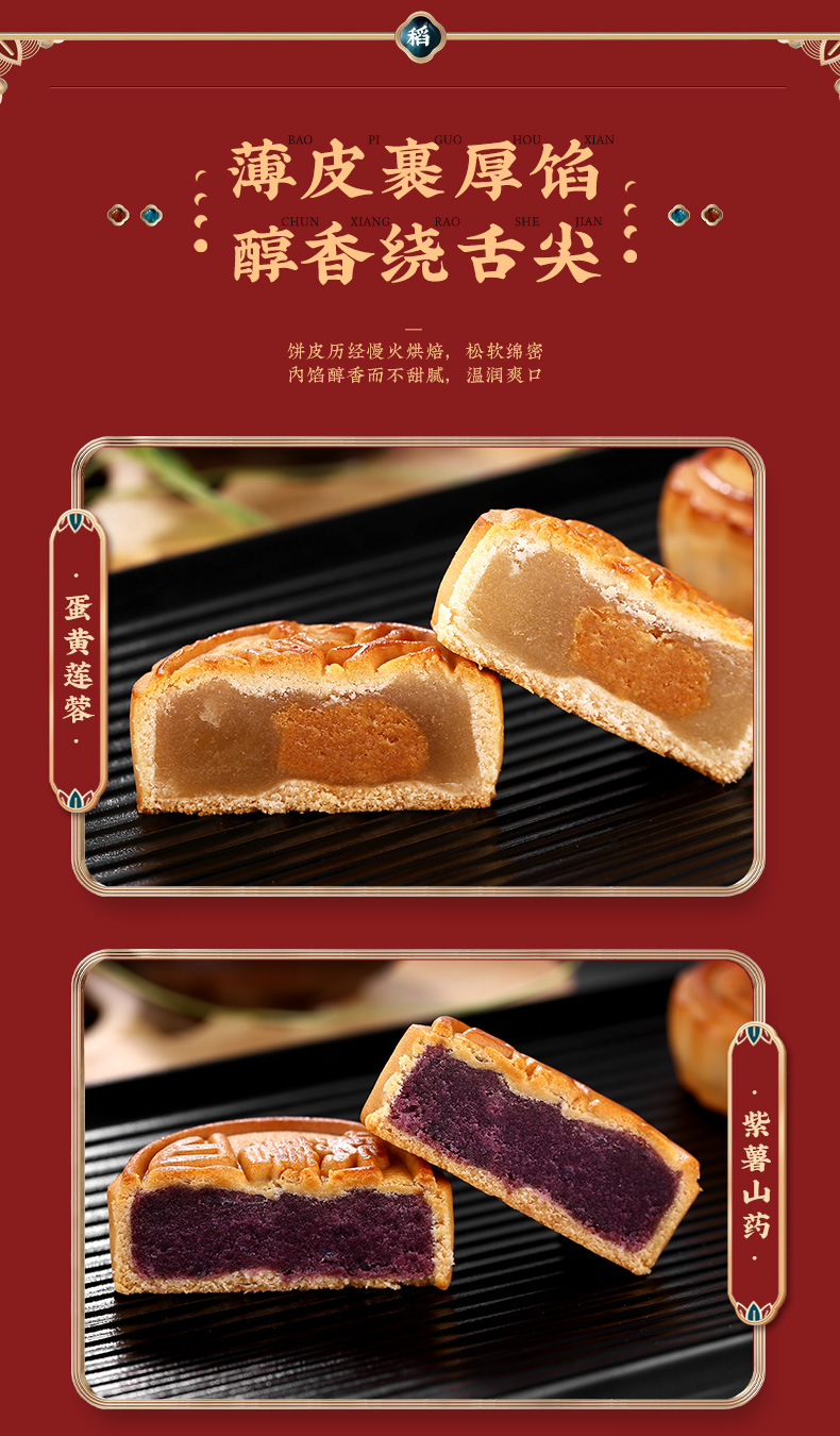 稻香村 广式月饼,传承百年工艺,皮层分明,馅料醇厚,色泽金黄圆润,皮薄而不失饱满,油润而不失香甜,咸香适宜,口感纯正。