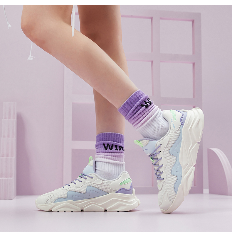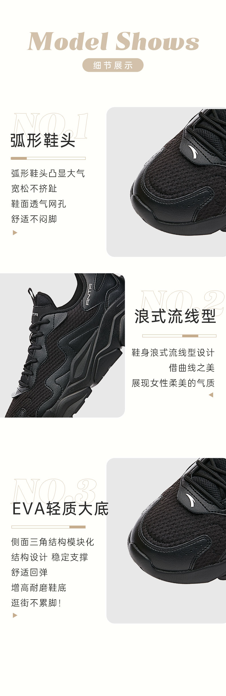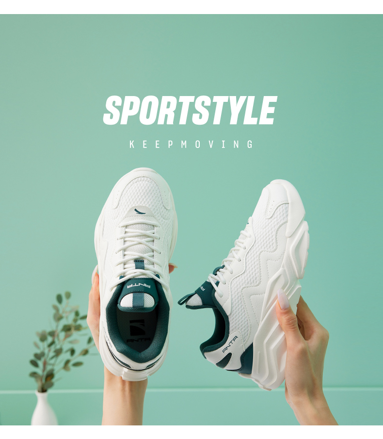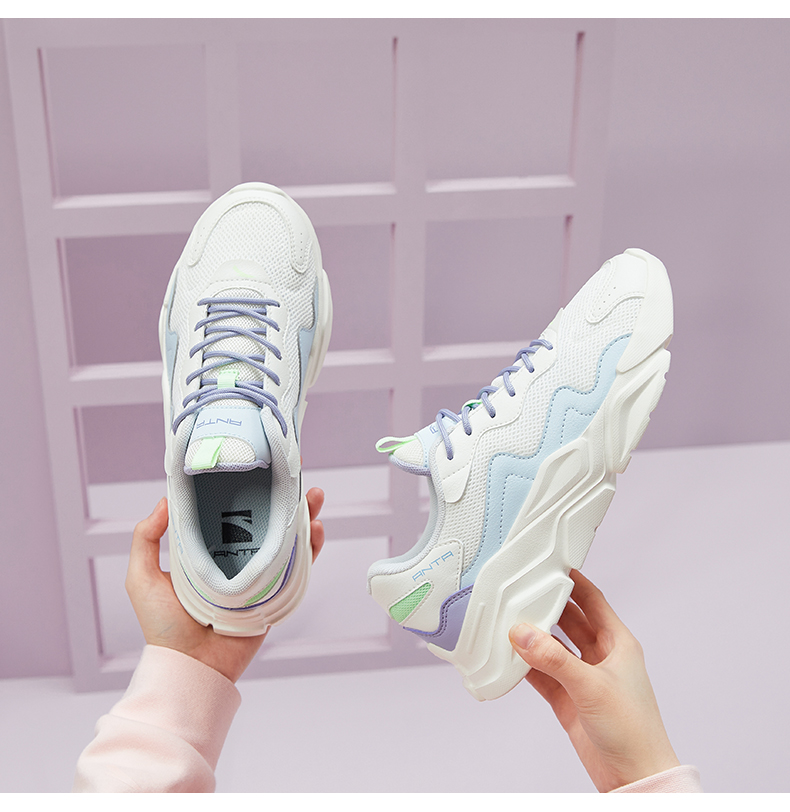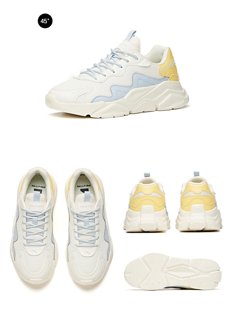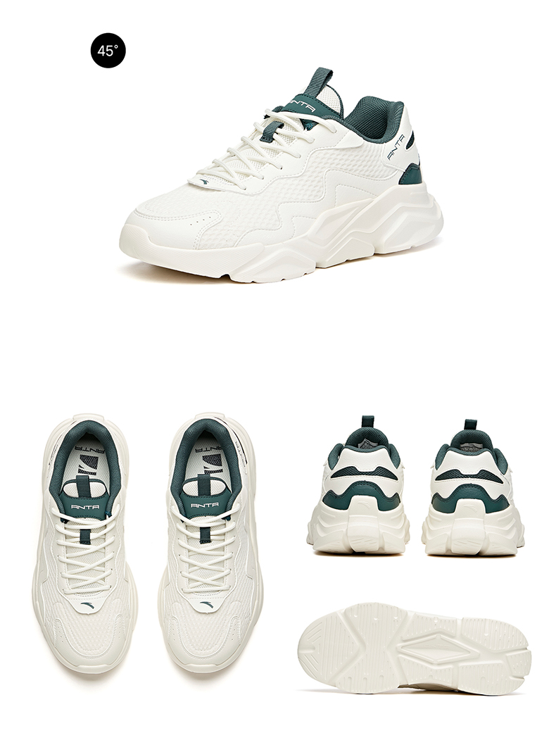 安踏 时尚休闲老爹鞋,鞋身浪式流线型设计,鞋面皮革+网布拼接,透气舒适不捂脚。EVA轻盈厚底,3cm隐形增高,平稳不失气质,巧妙打造大长腿。