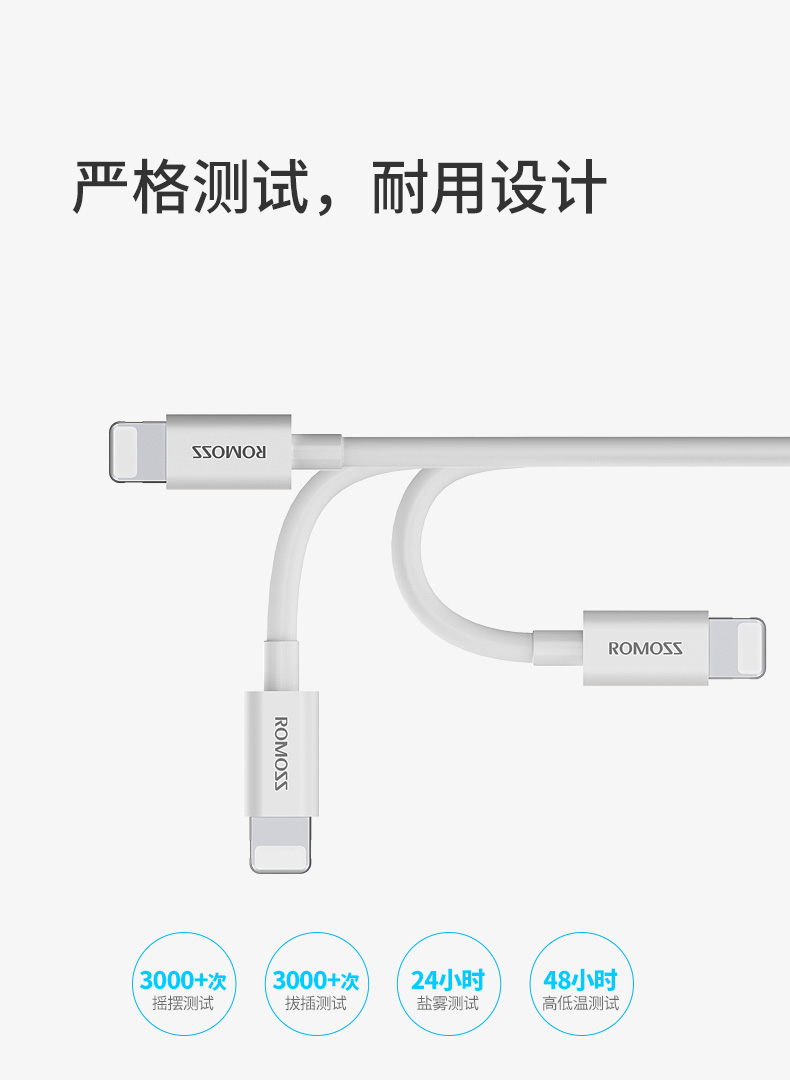 这款罗马仕 Lighting 数据线,线长1m,兼容IOS 9、10、11、12系统,内里是优质纯铜芯,能有2A电流,充电会更快。内置智能芯片可以从急速闪充到涓流充电,还能根据手机电池容量大小,自动调节输入电量的大小,保护电池。