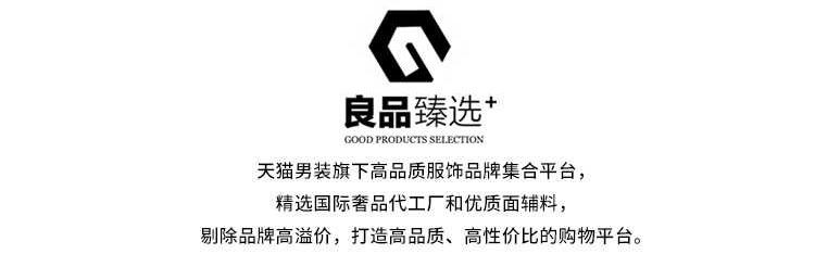 「良品臻选」是天猫男装高品质品牌集合,由天猫官方邀请加入。入选品牌均为国际一线大牌面料供应商,或生产制造商,对工艺和做工也要求相同品质,成品持平甚至超过国际品牌的水准。在此基础上剔除品牌高溢价,追求极致的高性价比,店铺口碑也要远高出行业均值,就是天猫良品臻选。