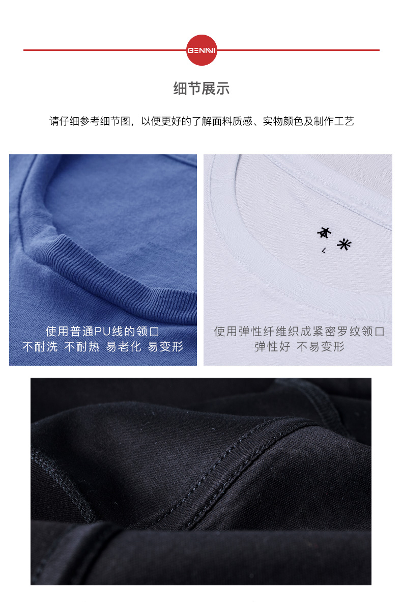 就档次来说,丝光棉比平常棉质面料好,虽不如桑蚕丝面料,但比蚕丝面料好打理,多用在夏天制作高档T恤衫、Polo衫。细节上,领口使用弹力纤维织就,弹性好不易变形,长期穿着拉扯也不会松垮,领口、肩膀细致包边,减少线头与皮肤摩擦,商标印标,无刺痒困扰,处理的非常用心。